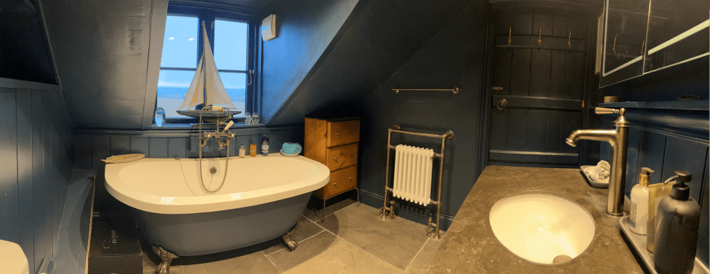 An awkward space enlarged and vastly improved. A bold decision was taken with the colour which gives the room a “dark academia” aesthetic. Work carried out included: